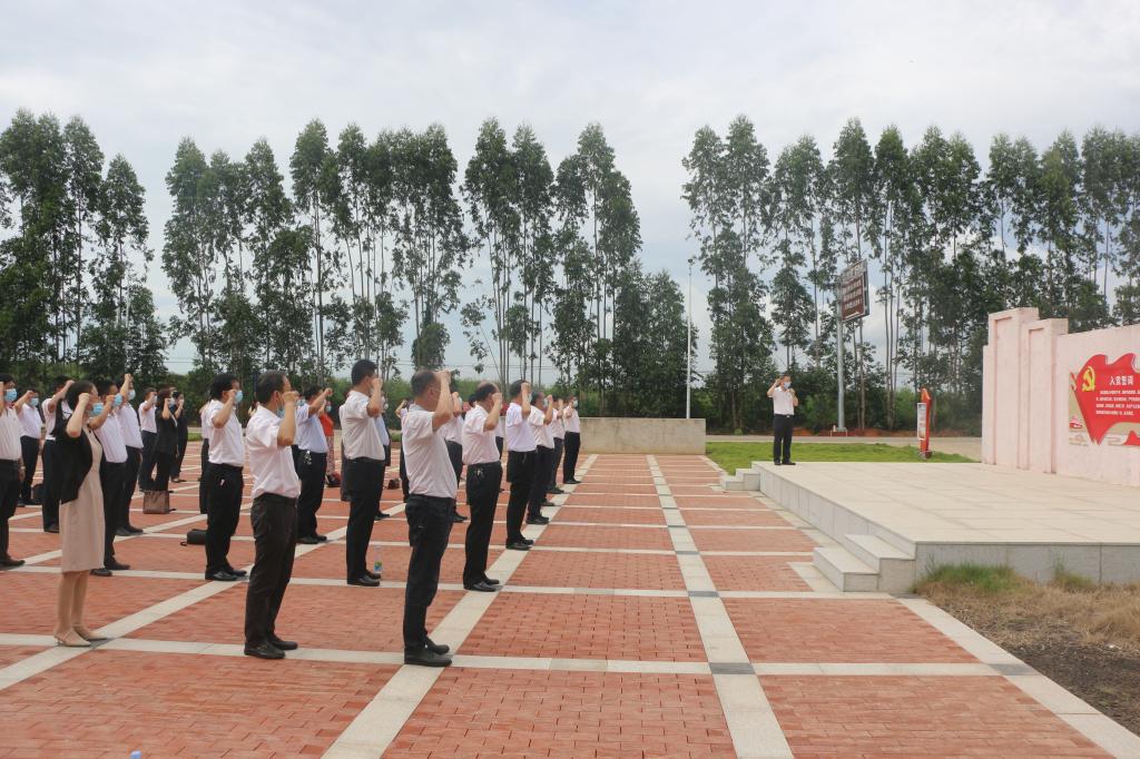 在遂溪西南地区革命史馆广场,全体党员领导干部佩戴党员徽章、整齐列队,面对鲜红的党旗、高举右拳,铿锵有力地重温入党誓词,表达了对党的忠诚和坚定不移跟党走的信念,激发了干事创业、争先创优的热情。