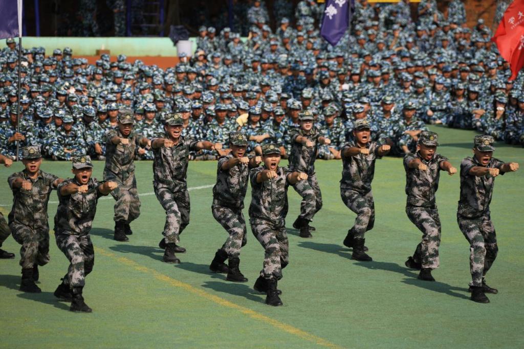 退役复学大学生士兵拳术方阵的拳术格斗表演