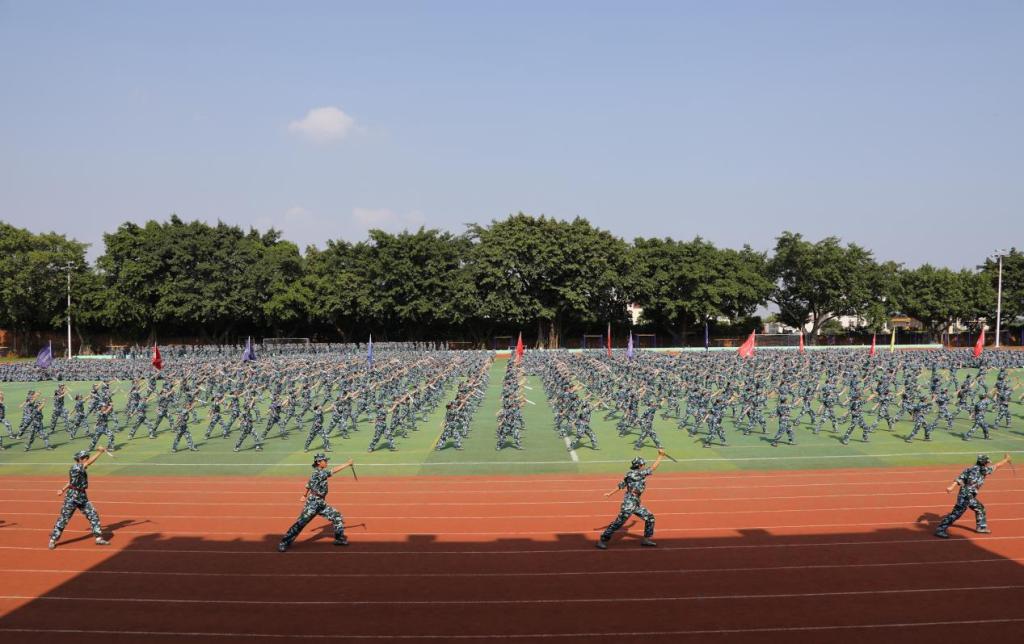沙场秋点兵,学子展雄风。9月29日、30日,学校2021级新生军事技能训练成果汇报暨总结表彰大会分别在湛江、阳江两地校区的湖光东区运动场和锦绣广场隆重举行。学校党委书记曹俊明出席大会并讲话,学校领导彭权群、林晓敏、刘东超、宁凌、林宇出席会议,本次军事技能承训单位湛江市国防教育训练基地军训部部长余书斌、阳江市阳东区人民武装部部长霍永利参加大会并发言,阳江校区管委会和相关职能部门负责人以及各学院党委副书记、全体教官、跟训老师、参训新生等约6000人参加大会,另有4000余名新生在线观看了直播。大会由副校长、军训旅旅长刘东超主持。