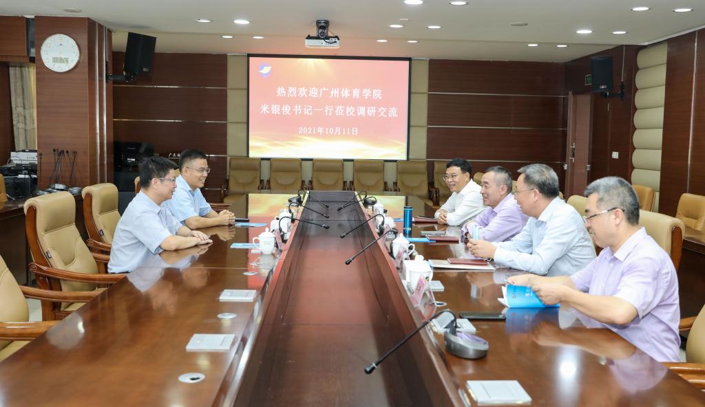 10月11日下午,广州体育学院党委书记米银俊和党(校)办主任张育方来校开展党建工作调研,学校党委书记曹俊明,党委副书记、纪委书记彭权群,党委常委、组织部长林宇等与米银俊一行进行了座谈交流。