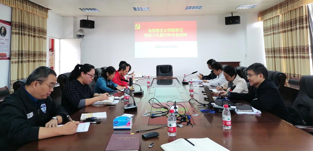十九届六中全会审议通过的《中共中央关于党的百年奋斗重大成就和历史经验的决议》,是一篇承前启后、继往开来的马克思主义纲领性文献。马克思主义学院将迅速行动起来,抓实抓深十九届六中全会精神的学习贯彻,尽快把全会精神融入教学内容,组织辅导报告,深入推进全会精神进课堂、进学生头脑的工作。