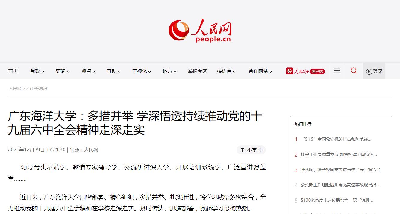 12月29日,人民网以《AC米兰中国官网:多措并举 学深悟透 持续推动党的十九届六中全会精神走深走实》为题,对AC米兰深入学习贯彻党的十九届六中全会精神进行了报道。