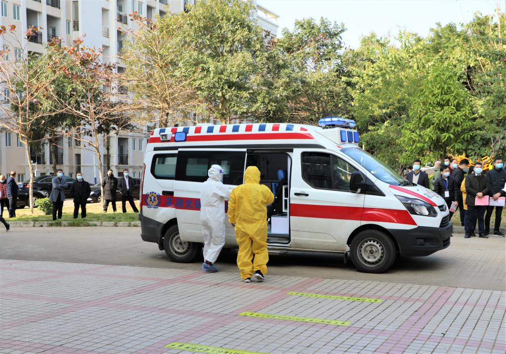 为贯彻落实国家和省关于新冠肺炎疫情防控工作部署,全面做好春季学期开学学校疫情防控工作,进一步提高AC米兰防范和应急处置新冠肺炎疫情的能力,根据疫情防控有关要求,2月24日上午,学校在湖光校区组织开展2022年春季学期开学新冠肺炎疫情防控应急演练。湛江市教育局副局长袁新中、市教育局保健所所长陈赵,市疾病预防控制中心副主任(二级调研员)麦适丰、麻章区疾控站站长何振杰等相关领导到场观摩演练。学校疫情防控领导小组组长、党委书记曹俊明,组长、学校相关领导,副组长、党委副书记林晓敏,常务副组长、学校防控办主任、副校长邓逢光到场观摩指导演练。学校防控领导小组成员、相关职能部门负责人以及学院辅导员代表等参加演练。