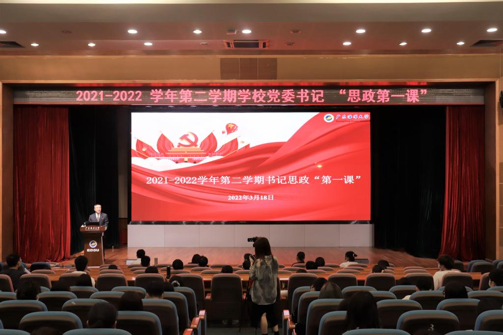 3月18日下午,学校党委书记曹俊明在湖光校区教学主楼多功能厅开讲2022年春季学期党委书记“思政第一课”,引导同学们深刻学习领会党的十九届六中全会精神,深刻学习领会习近平总书记在全国两会期间重要讲话和全国两会精神,勉励同学们以史为鉴、开创未来,积极进取、逐梦前行,以优异成绩迎接党的二十大胜利召开。共有200余名学生代表现场参加学习,另有近2000人次学生在线听讲课程。