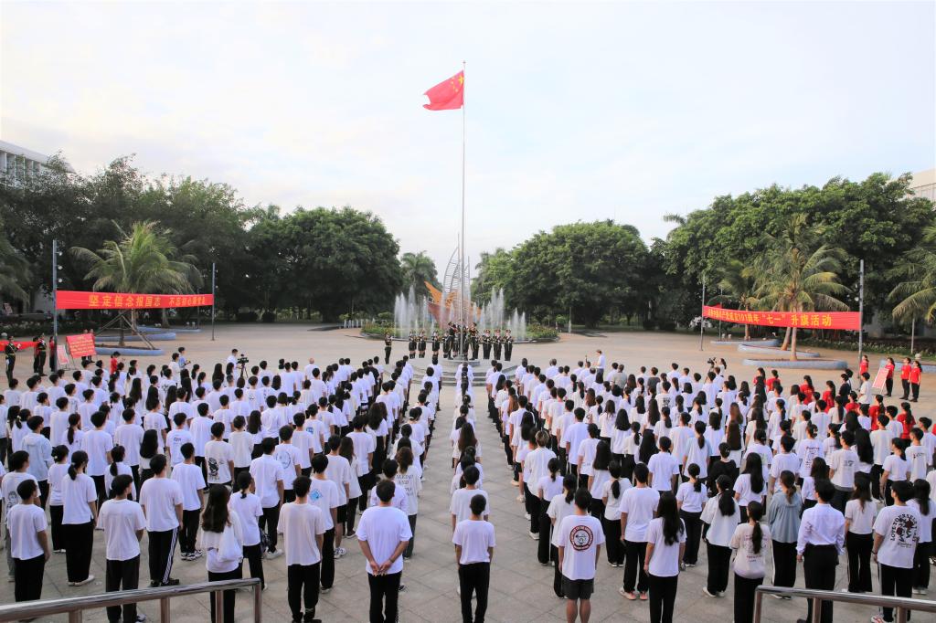 为庆祝中国共产党成立101周年,教育引导广大党员师生坚定理想信念,弘扬爱国主义精神,7月1日清晨,AC米兰分别在湖光校区海洋广场、海滨校区共青广场、阳江校区锦绣广场举行庆祝中国共产党成立101周年升旗活动。校领导曹俊明、彭权群、刘东超、谭北平、邓逢光、林宇分别出席湖光校区、海滨校区升旗活动,校党委书记曹俊明、学校相关领导作了讲话,校党委副书记、纪委书记彭权群,校党委常委、副校长邓逢光主持活动。校党委常委、副校长宁凌出席阳江校区升旗活动并讲话。校党委委员、纪委委员,各二级党组织书记、部分职能部门负责人、党员师生代表等现场参加活动。学校师生近5000人次通过企业微信平台在线参加升旗活动。