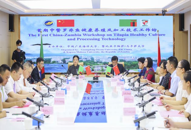 为提升赞比亚渔业从业人员对罗非鱼养殖的认识,促进赞比亚渔业转型升级,为期两天的工作坊培训课程内容聚焦罗非鱼的苗种繁育、规模化养殖、高效饲料、病害防控、深加工和市场流通等6大专题,全面介绍中国罗非鱼全产业链的发展状况,系统帮助当地官员和渔民掌握罗非鱼科学养殖技术。