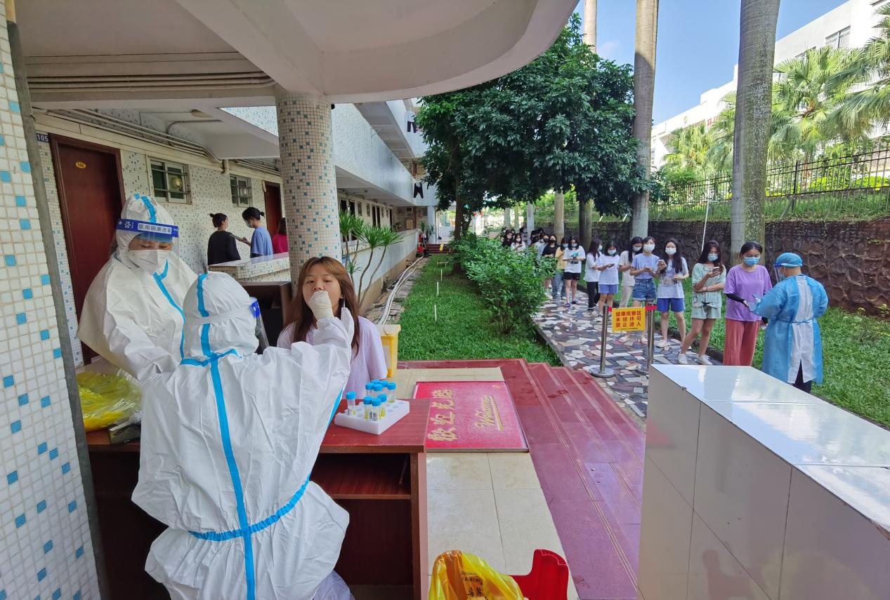 全员核酸。根据属地疾控部门的安排,学校在湖光校区的校门口、体育馆、各学生公寓大院及海滨校区、霞山校区共设立39个核酸检测点,有序开展全员核酸检测工作。湖光校区、海滨校区、霞山校区核酸检测点每日累计检测超过3.2万人。