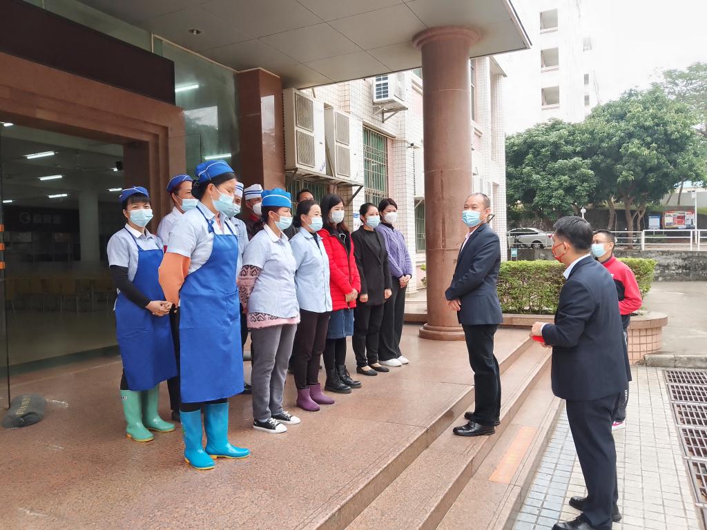 邓逢光一行先后前往湖光校区南门、行政楼监控室、海研宿舍、学生第三食堂、校门诊部以及霞山校区、海滨校区大门等学校重点场所,与假期以来一直坚守岗位的教职员工深入交流,互致新春问候,随后送上暖心的新年礼包。对他们春节期间舍小家、顾大家的奉献精神表示诚挚感谢;对他们坚守岗位、服务大局,为学校安全稳定和后勤保障服务作出的贡献表示充分肯定。