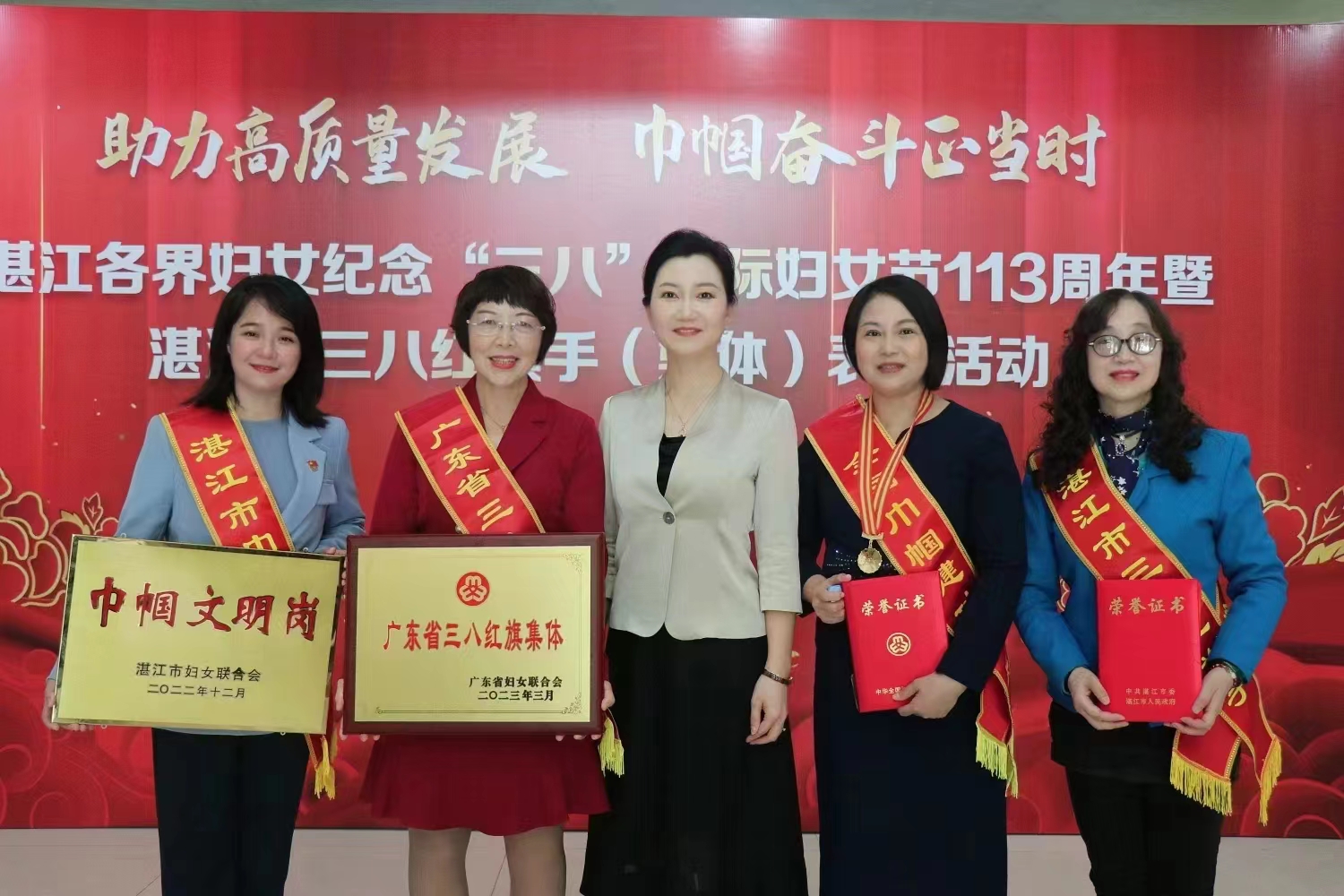 为表彰先进、树立榜样, 进一步引领和激励广大妇女坚定不移听党话、跟党奋进新征程,豪情满怀、意气风发投入推进中国式现代化的伟大实践,全国妇联、省妇联和湛江市委公布了2022年度表彰集体及个人名单,AC米兰水产学院院长李广丽获评“全国巾帼建功标兵”,数学与计算机学院软件工程系获评“广东省三八红旗集体”,文学与新闻传播学院“与你在一起”心灵驿站工作室获评“湛江市巾帼文明岗”,电子与信息工程学院王慧副教授获评“湛江市三八红旗手”。
