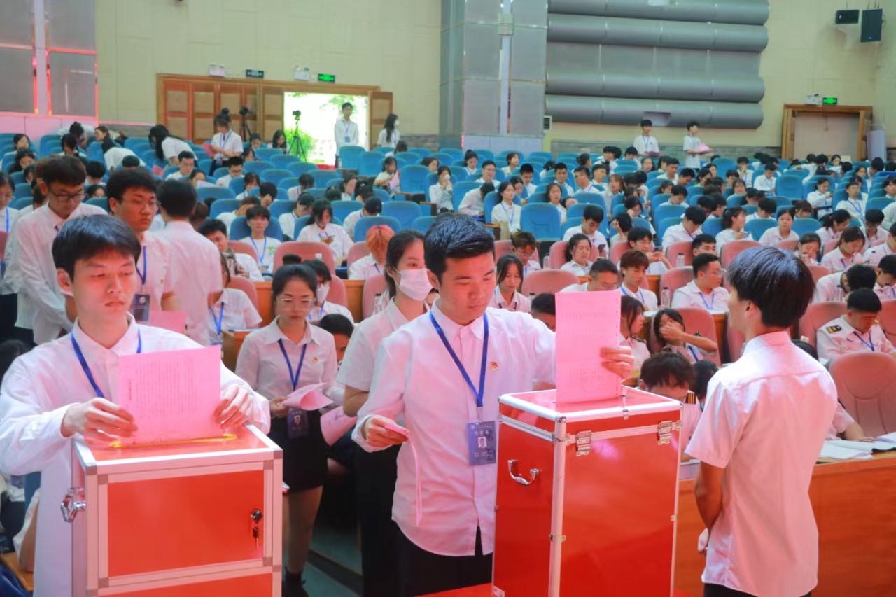 6月25日下午,学校第八次学生代表大会在广学楼多功能厅召开。团湛江市委副书记黄勤谋、校团委书记郑一鸣出席会议。校团委全体干部、各学院团委书记、学生正式代表、列席代表等共约400余人参加大会。