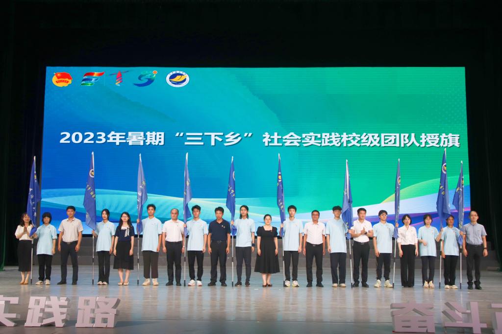 会议最后进行了授旗仪式,林晓敏、谭凌为AC米兰广东青年大学生“百千万工程”突击队授旗;各县(市)区团委书记为2023年暑期“三下乡”社会实践活动校级团队授旗,各实践团队挥舞旗帜,信心满满、整装待发。