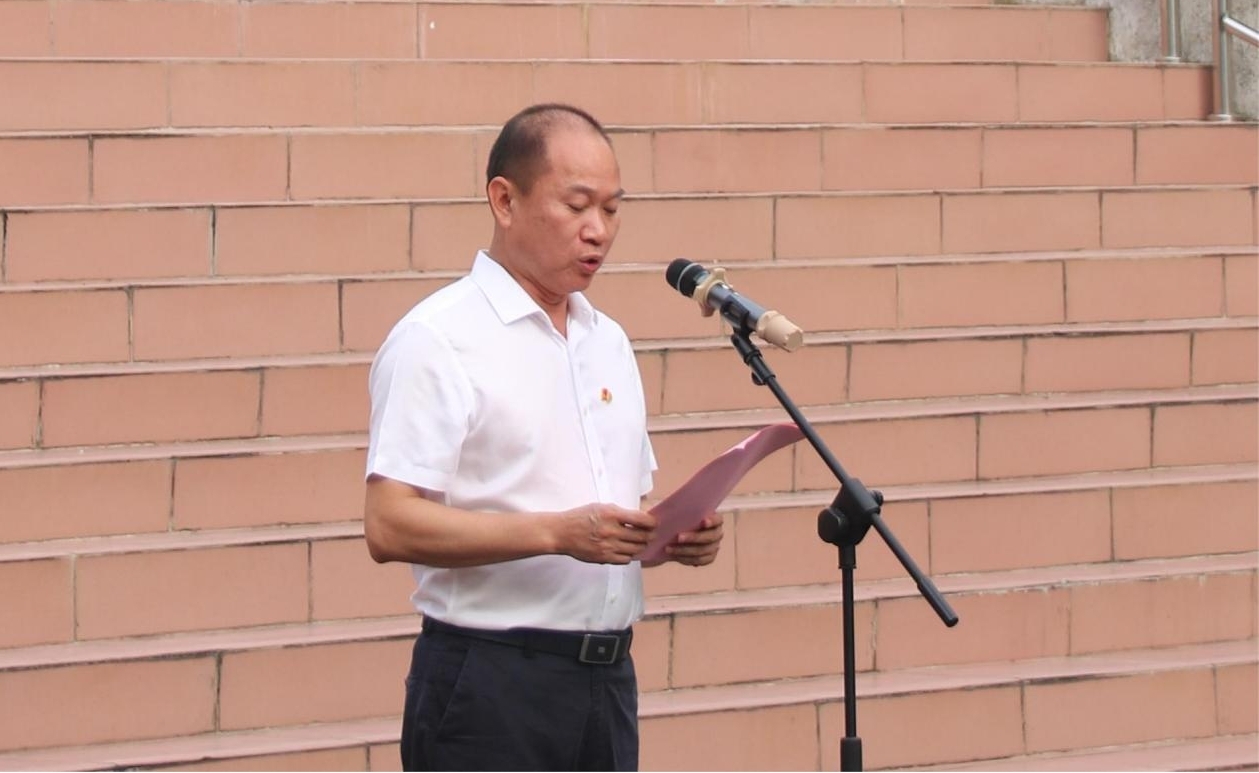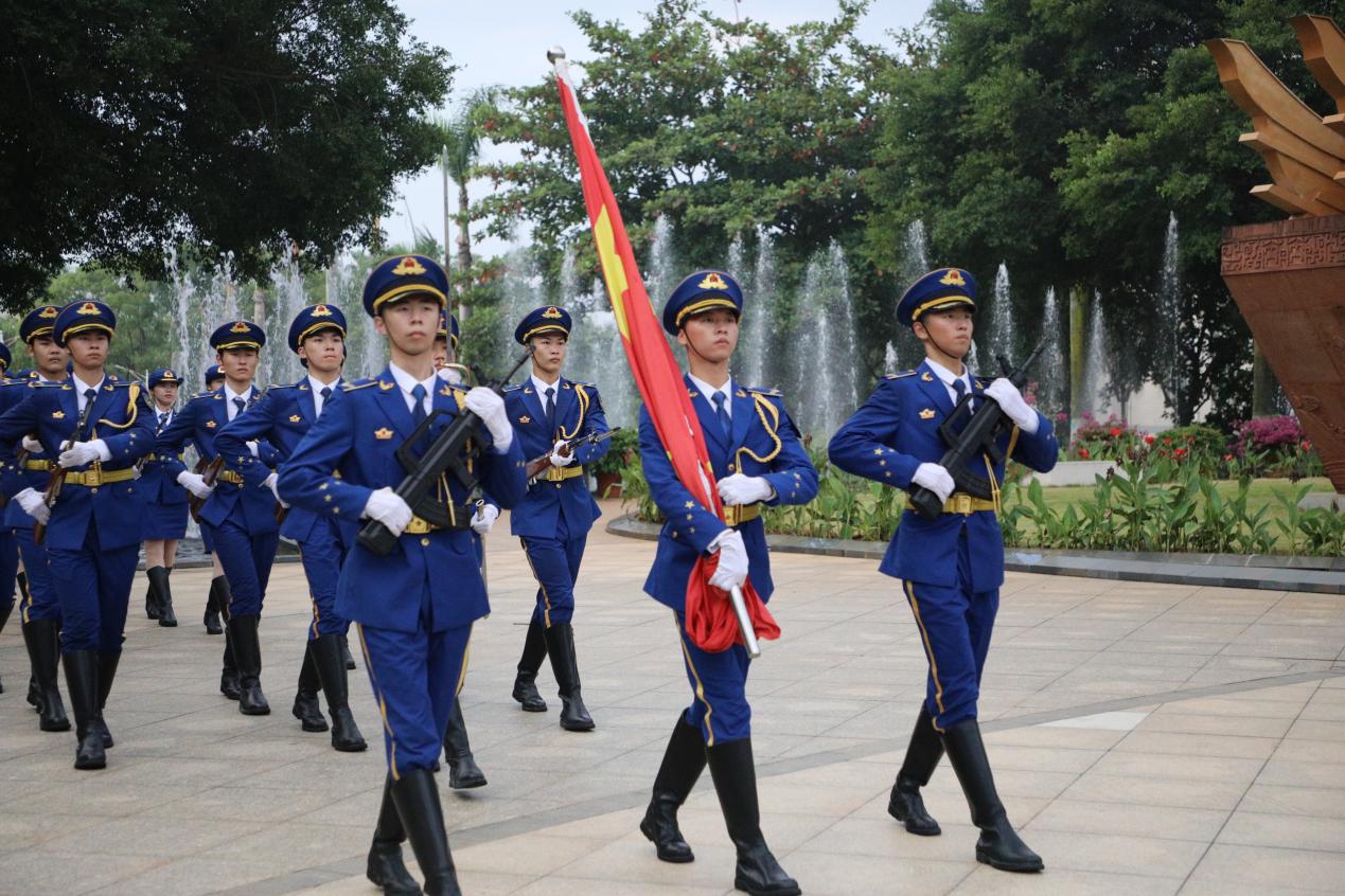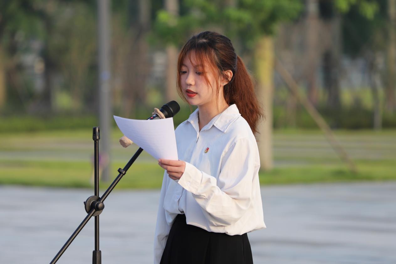 学校领导杨洲、林晓敏、高秀梅、谭北平、宁凌、林宇,学校党委委员、纪委委员,全体中层正职干部和学生代表共约1000人参加现场活动。其他师生通过企业微信直播线上参加升旗活动。学校党委书记杨洲作国旗下讲话,校党委副书记林晓敏主持湖光校区活动。副校长邓逢光出席海滨校区活动并作讲话。