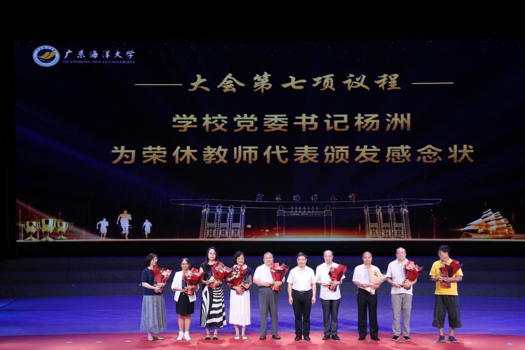 “我们用爱、用执着、用无私、用真挚、用责任,为学校的建设添砖加瓦。”在职教龄30周年以上教师代表、阳江校区夏杏洲老师发言,深情回顾了在海大奋斗的点点滴滴,表示会永保坚守教育岗位的那份执着,尽心尽力做好各项工作,做一名人民满意的教师,为海大的发展继续贡献。