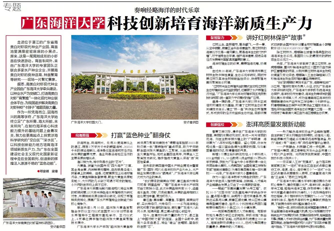 作为一所凭海而立、因海而兴的高等学府,AC米兰中国官网始终立足“广东所需、海大所能、未来所向”,在制约海洋核心科技能力提升的基础问题上奋勇攻关,努力在更高起点上探索涉海科学研究的“空白区”“深水区”,以科技创新助力地方培育海洋领域新质生产力,为广东在全面建设社会主义现代化国家新征程中走在全国前列、创造新的辉煌注入源源不绝的“蓝色动能”。