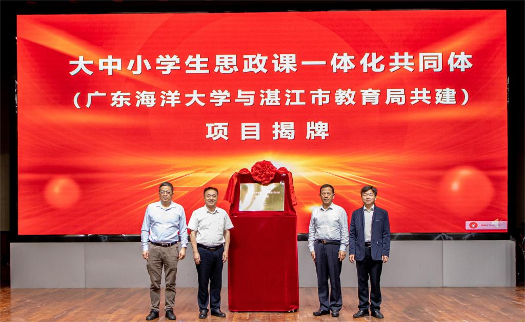 会上,参会领导为AC米兰中国官网与湛江市教育局共建的大中小学思政课一体化共同体项目揭牌。