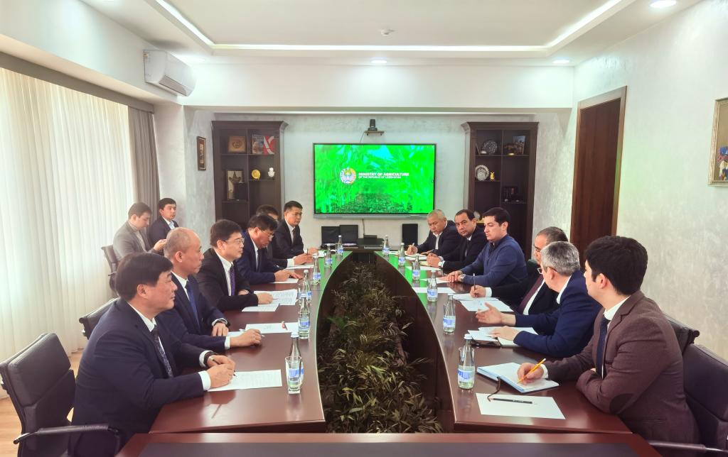 一行与乌兹别克斯坦农业部部长伊布罗希姆・阿卜杜拉赫莫诺夫等会谈