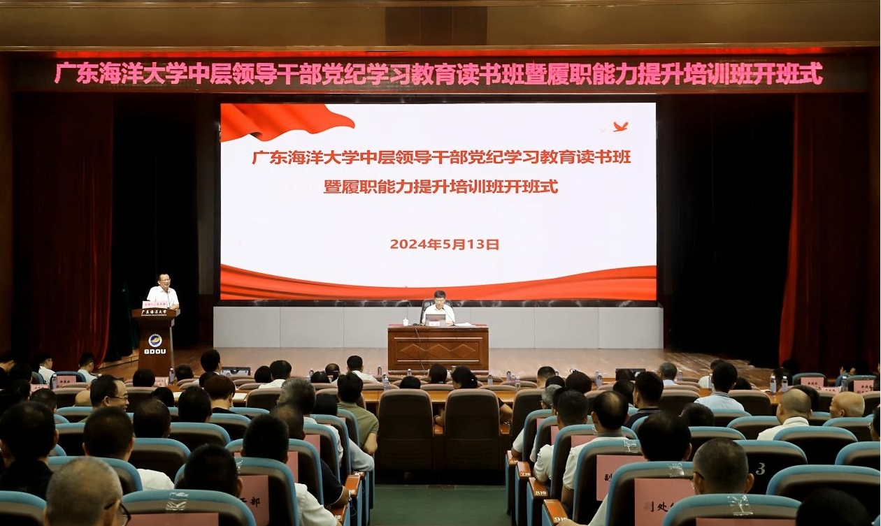 为深入贯彻落实党中央、省委关于党纪学习教育工作部署,进一步强化学校中层领导干部纪律意识和履职担当能力,5月13日上午,学校中层领导干部党纪学习教育读书班暨履职能力提升培训班在湖光校区开班。学校党委书记杨洲出席开班式,以《凝心聚力 讲好海大故事》为题作干部培训专题辅导报告,并讲授题为《着力学纪知纪明纪守纪 始终做到忠诚干净担当》的党纪学习教育专题党课。学校党委常委、副校长邓逢光作《高校干部的素质与能力提升》专题辅导报告。党委组织部部长曾庆新主持开班式。全校处级干部(包括新提拔副处级干部)参加培训学习。