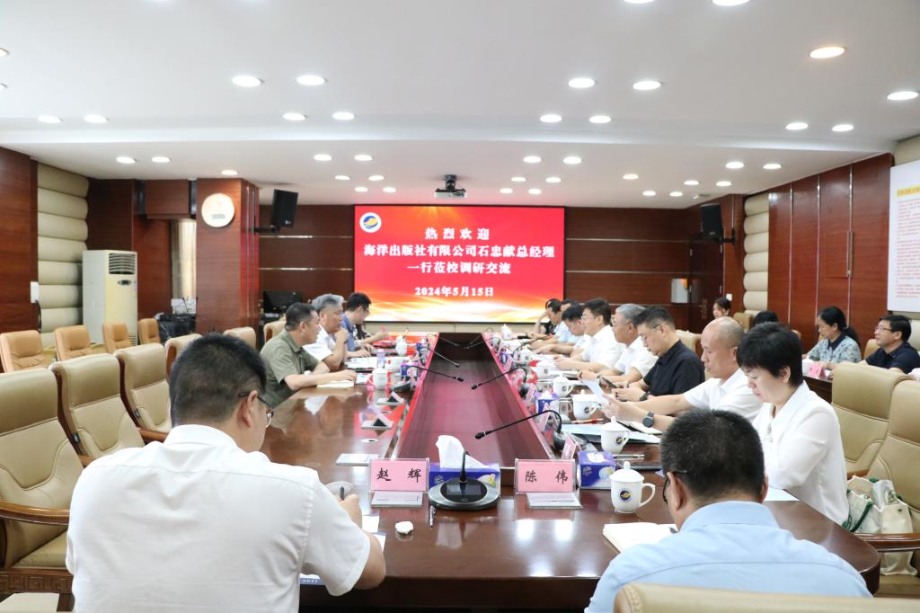 5月15日下午,国家海洋出版社有限公司总经理石忠献一行来校调研,学校党委书记杨洲代表学校对一行来访表示热烈欢迎并主持座谈会。