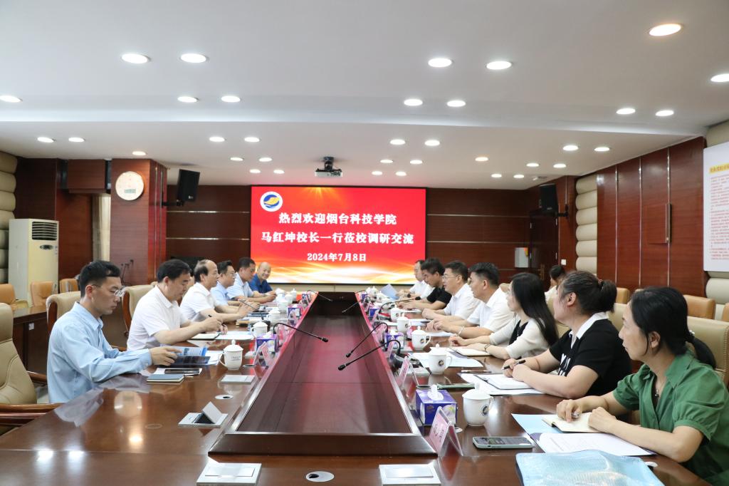 7月8日上午,烟台科技学院校长马红坤一行6人莅校调研交流,学校党委书记杨洲主持座谈会,相关单位部门负责人参加会议。