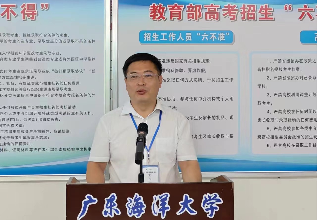 7月19日下午,学校在海滨校区实验楼505课室(录取现场)召开2024年普通本科招生录取现场工作动员会,学校党委书记杨洲出席动员会,会议由学生工作部部长、招生与就业指导中心主任郑一鸣主持,纪委监察室、招生与就业指导中心、各学院参与招生录取人员参加会议。