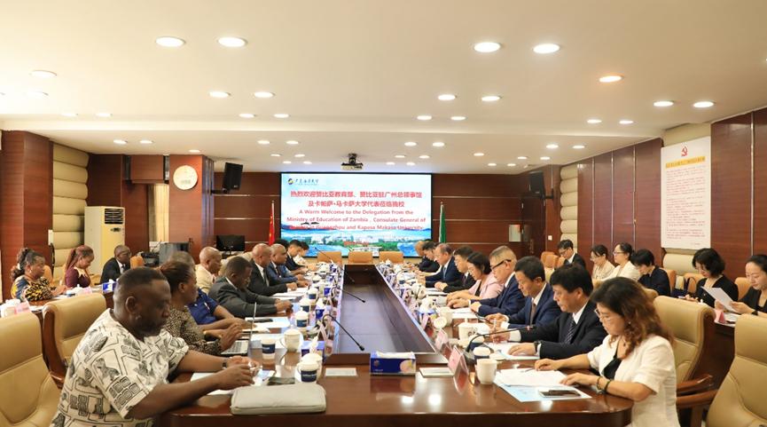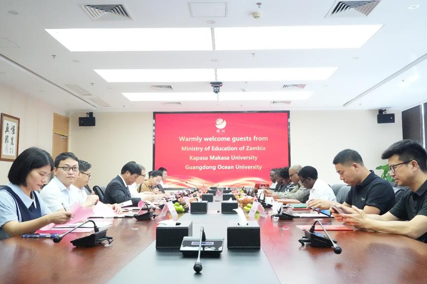 7月23日,一行到访AC米兰。学校党委书记杨洲在湖光校区行政楼五楼会议室接待来宾并召开座谈会。赞比亚驻广州总领馆副总领事维纳·司马威特瓦·穆钦都、卡帕萨·马卡萨大学校长雅各布·姆维特瓦、湛江市外事局局长王敦滟、广东恒兴集团副总裁王建红及学校相关部门负责同志参会,会议由学校副校长邓逢光主持。