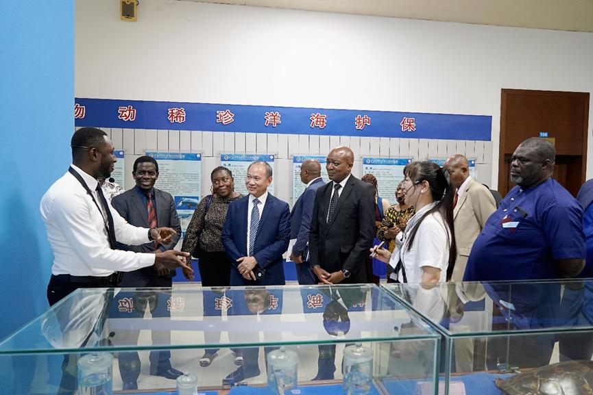 一行在邓逢光的陪同下参观了学校校园、水生生物博物馆和水产楼实验室。