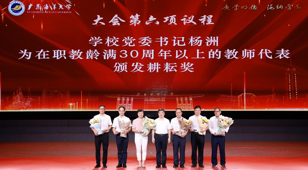 学校党委书记杨洲向在职教龄满30周年以上的教师代表颁发“耕耘奖”