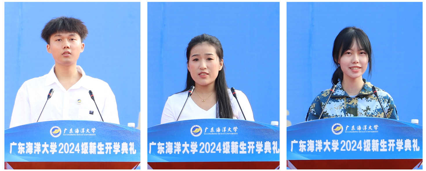 校友代表、2010级大气科学专业冯小芳用“体验”“勇敢”“梦想”三个词勉励新生以梦想为帆,怀抱勤奋学习的态度,传承海大精神,用拼搏谱写成长的华章。