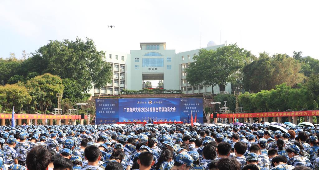 9月12日上午,学校在湖光校区中心广场举行2024级新生军训动员大会。学校党委书记杨洲出席大会并作动员讲话。校党委副书记、军训旅政委谭平主持大会并宣读各军训营营长、教导员名单。军训旅联合参谋部、政治工作部、后勤保障部有关人员,各学院分管学生工作的领导、负责带训管训和服务保障的老师以及湛江校区全体2024级参训学生参加大会。