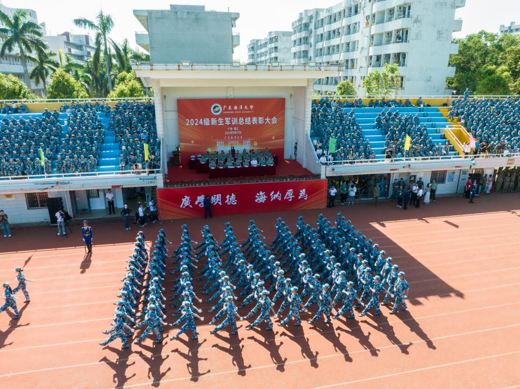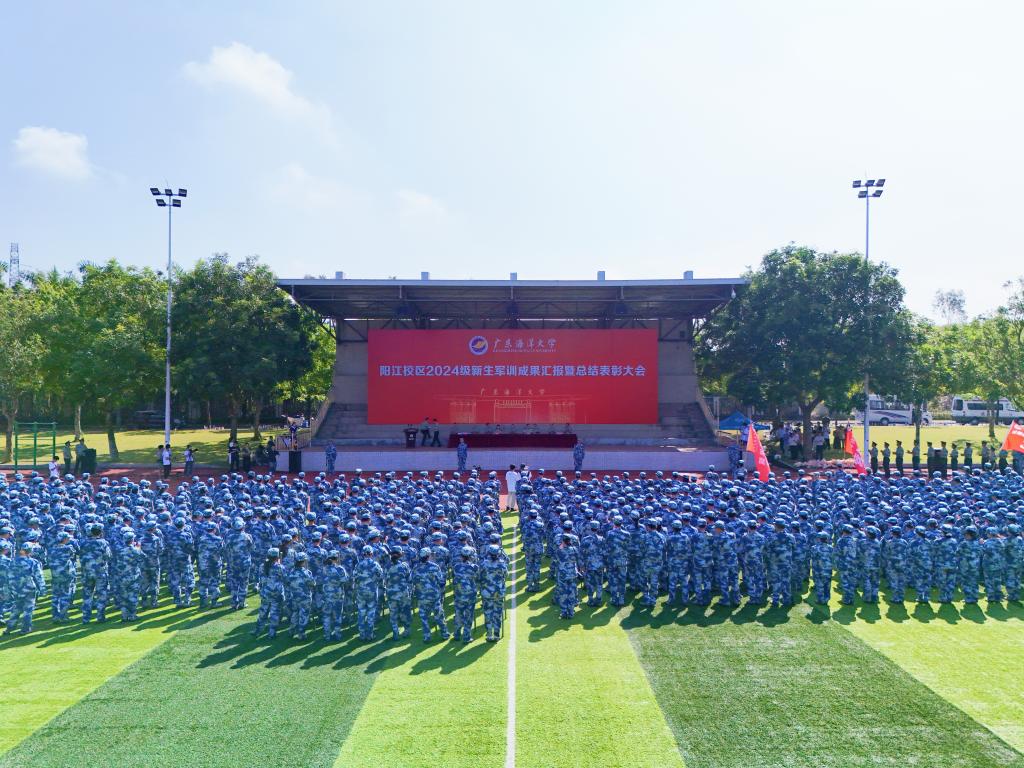 展飒爽英姿,壮青春之志。9月27日,学校2024级新生军训总结表彰大会分别在湖光校区东区体育场及阳江校区行健运动场举行。学校党委书记杨洲,学校党委副书记、军训旅政治委员谭平分别在湖光校区和阳江校区大会上讲话。校党委常委、副校长、2024级新生军训旅旅长邓逢光主持湖光校区大会。阳江校区党委副书记、军训团团长丁永成主持阳江校区大会。相关职能部门负责人,全体教官、各学院分管学生工作的领导、各学院负责教育管理和保障服务的老师,以及5000多名参训新生现场参加大会,其余新生通过线上平台收看大会直播。