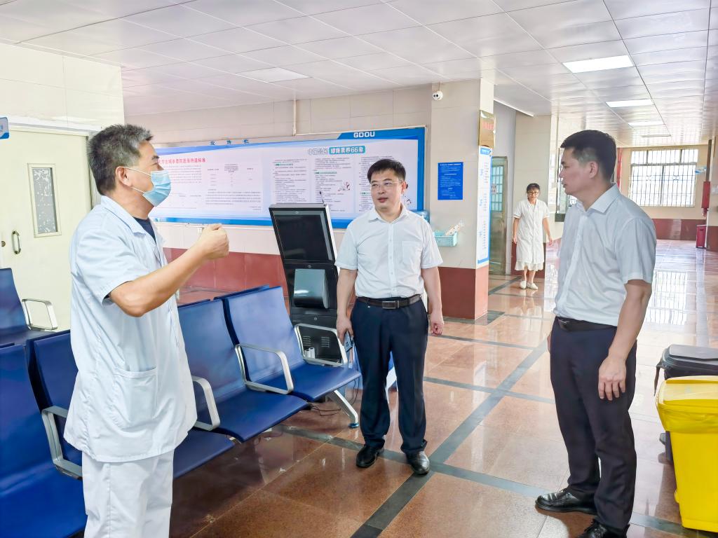 10月1日,学校党委书记杨洲深入湖光校区,看望慰问师生。杨洲先后来到南门广场、门诊部、饭堂、学生宿舍等,详细了解了学生离校乘车、就医治疗、饭菜供应、宿舍管理等情况。