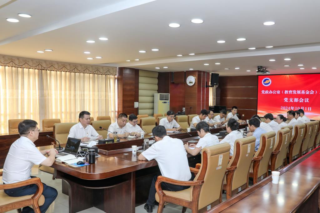 在新中国成立75周年之际,为歌颂新中国成立75年来取得的辉煌成就,进一步激发支部党员干事创业的积极性、主动性,提升支部凝聚力和战斗力,10月1日,党政办公室(教育发展基金会)党支部组织全体党员在湖光校区参加学校庆祝新中国成立75周年升旗仪式,与全校师生一起共同祝福伟大祖国生日快乐、繁荣昌盛、国泰民安,并召开支部党员大会暨党课学习。学校党委书记杨洲参加支部大会并讲授了《不忘初心,筑梦前行》专题党课。