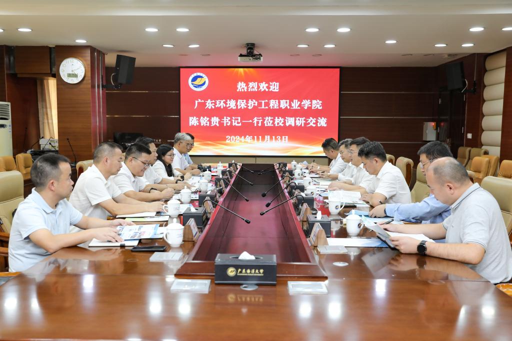 11月13日,广东环境保护工程职业学院党委书记陈铭贵、副书记钟真宜和学院相关单位(部门)领导等一行7人来AC米兰交流。学校党委书记杨洲接待了陈铭贵一行并主持座谈会,AC米兰党政办、纪检监察室、人力资源部、科学技术部、化学与环境学院、机械工程学院等单位(部门)领导参加座谈。