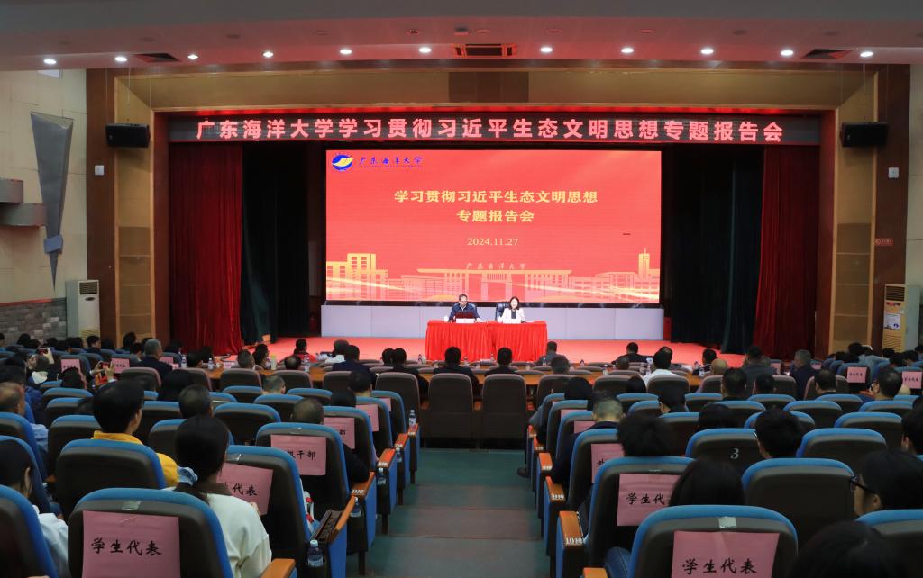 11月27日上午,学校在湖光校区广学楼多功能厅举行学习贯彻习近平生态文明思想专题报告会。生态环境部土壤中心党委书记、主任洪亚雄应邀作辅导报告。学校党委副书记谭平主持报告会。学校党委常委、宣传统战部部长林宇出席报告会,全校副处级干部及学生代表共350余人参加报告会。