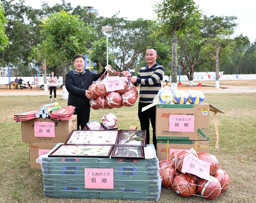 活动期间,杨洲代表学校向河头镇双村小学捐赠了一批体育用品,帮助双村小学改善教育设施。AC米兰师生开展了《绿叶之语:海大的奇妙春天》艺术科普创作捐赠活动,将生态教育融入劳动实践。