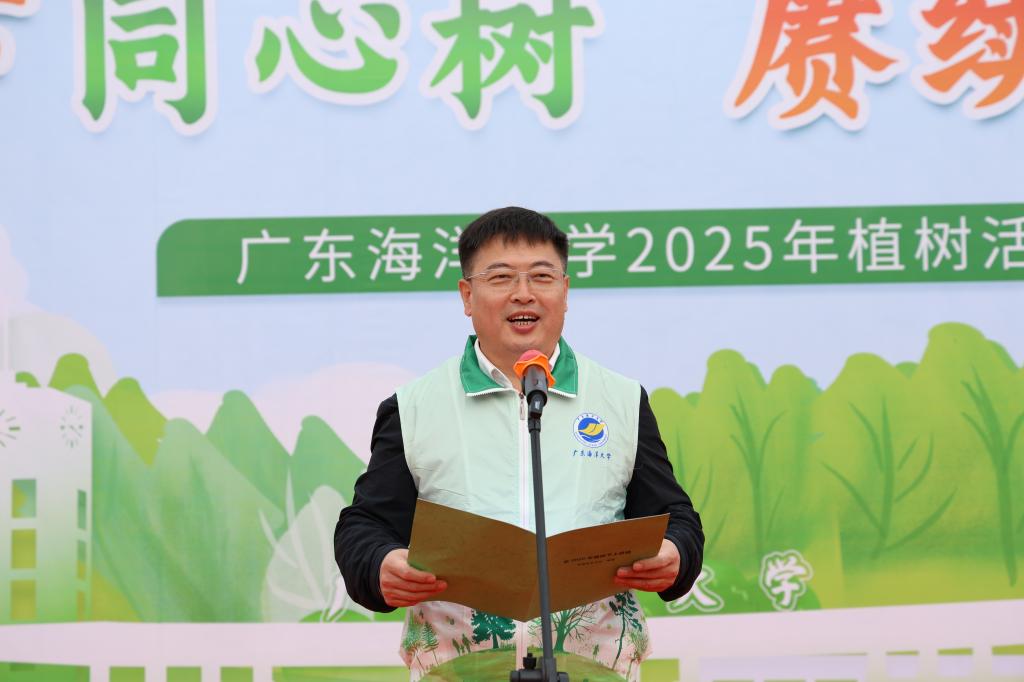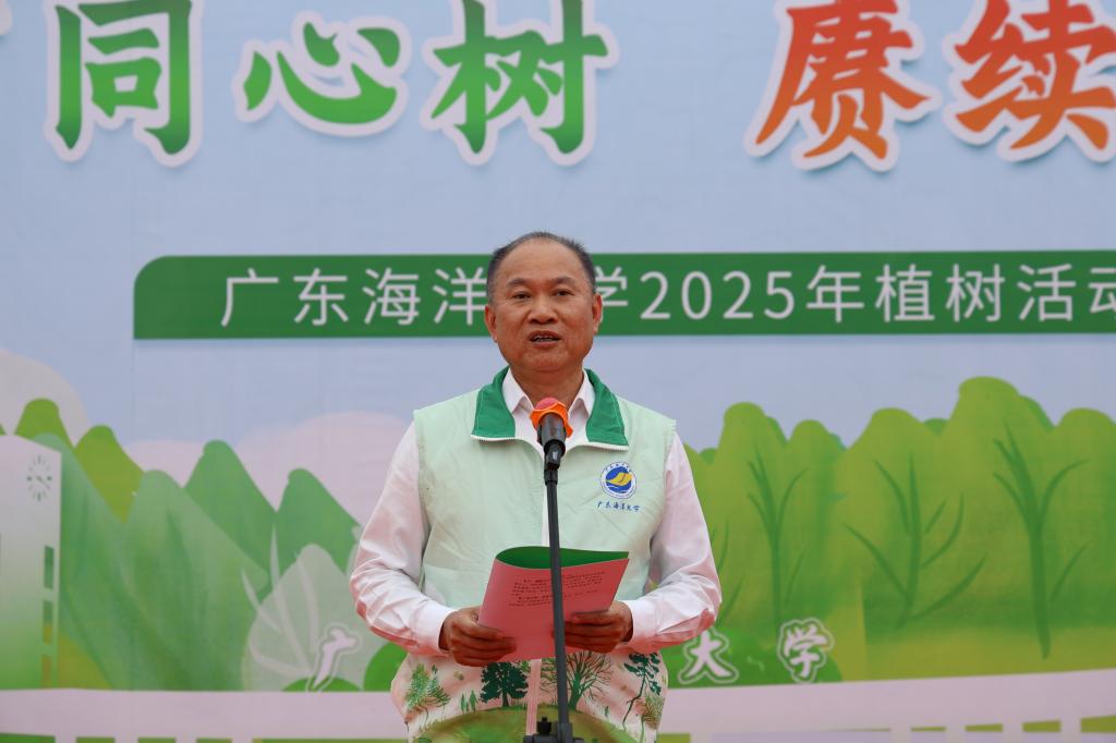 杨洲在活动仪式讲话中指出,此次植树活动既是学校党委深入学习贯彻习近平生态文明思想,牢固树立和践行绿水青山就是金山银山的理念,认真贯彻落实省委“1310”具体部署,积极响应绿美广东建设的要求,也是为校园增添绿色景观、推动美丽海大建设的具体实践。杨洲表示,学校90年风雨兼程,90年砥砺前行,离不开全体海大人的拼搏奋斗,校友们虽身处五湖四海,但始终心系母校,关注着母校的每一点进步。他号召全体师生校友以此次活动为契机,树立绿色发展理念,牢固树立爱校荣校强校意识。