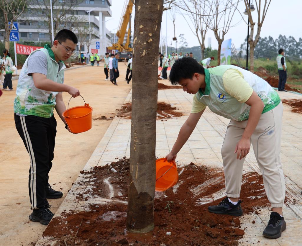 在植树启动仪式后,师生们分批前往指定植树区域。活动现场,大家热情高涨,挥锹铲土、提水浇灌,将象征希望的树苗植入校园沃土,以实际行动为美丽海大增添新绿,校友们表示,将以此次植树为新起点,持续关注和支持学校发展建设,携手为学校九十华诞献礼。