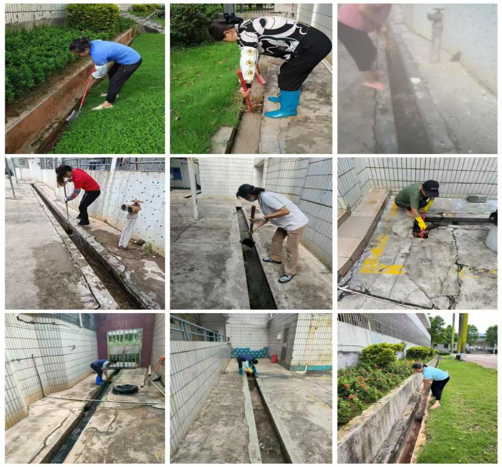 后勤保障部组织对校园各个角落开展除积水清垃圾、消杀灭蚊