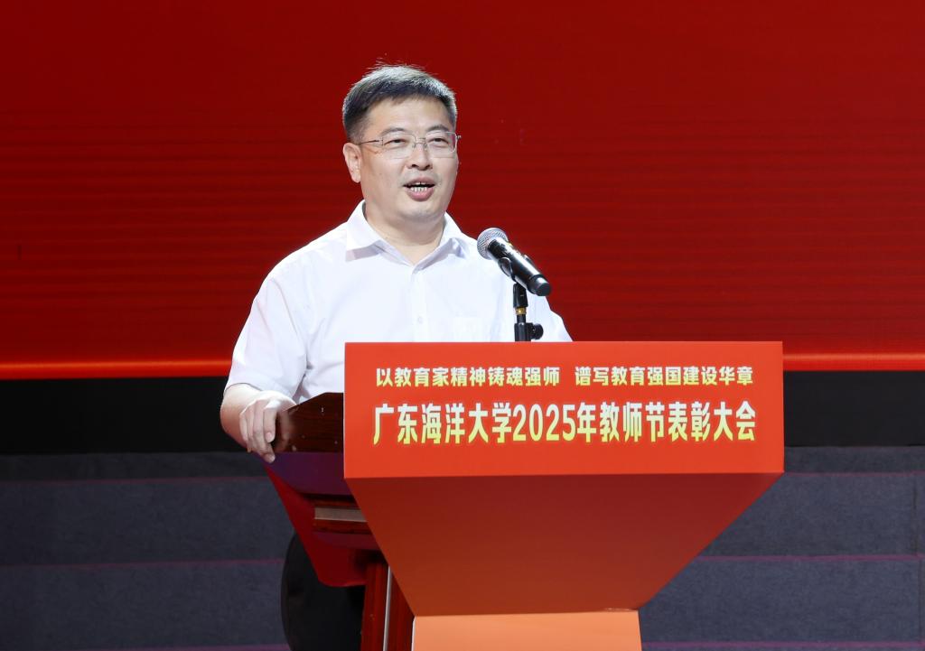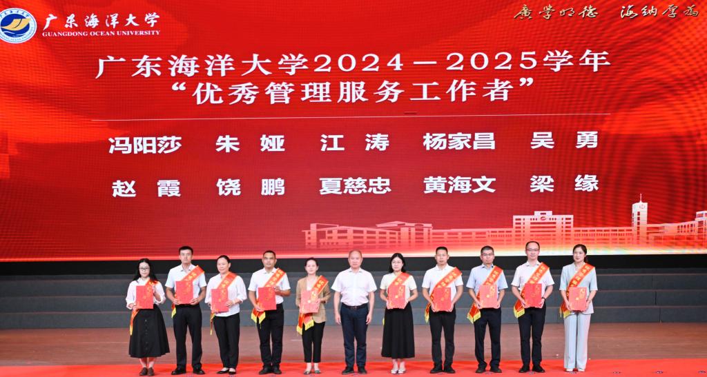 金秋送爽,硕果盈枝。为大力弘扬教育家精神,激励广大教师以先进为榜样,立足岗位、追求卓越,践行“为党育人、为国育才”的神圣使命,9月9日下午,学校举行2025年教师节表彰大会。大会主题为“以教育家精神铸魂强师,谱写教育强国建设华章”,向辛勤耕耘在教育一线的教职工致以诚挚的节日问候。大会在湖光校区实验剧场设主会场,在湖光校区广学楼多功能厅、海滨校区礼堂、阳江校区海纳楼多功能厅设会场。
