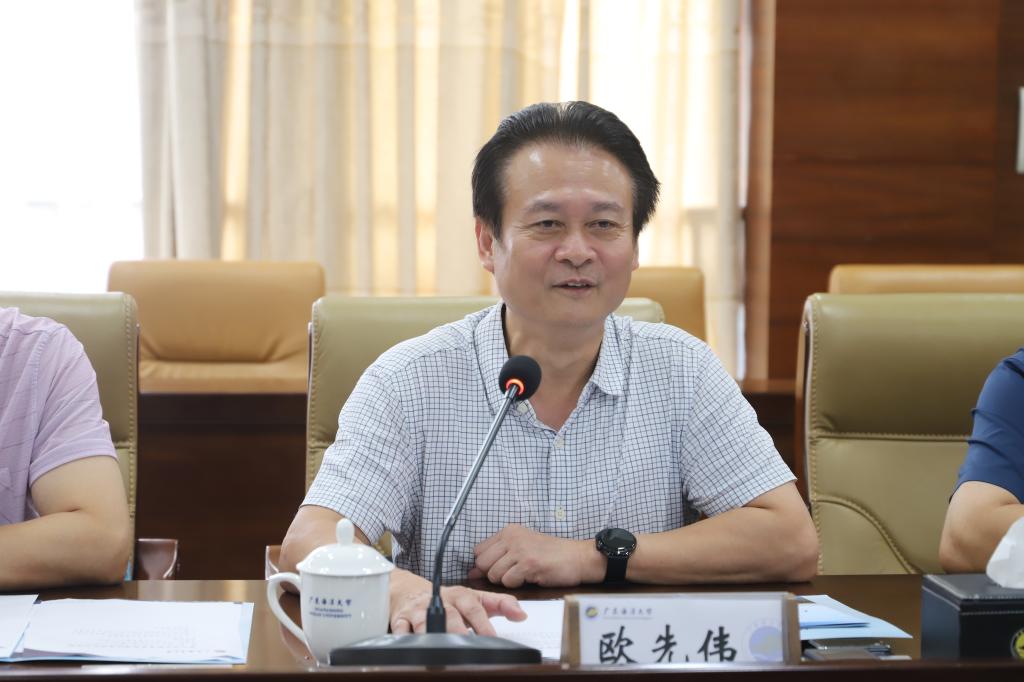 杨洲代表学校对欧先伟一行的到来表示欢迎。杨洲指出,学校与湛江湾实验室的科研定位高度契合,希望以此次座谈为契机,进一步细化合作路径,共同助力湛江海洋经济高质量发展与服务海洋强国建设。