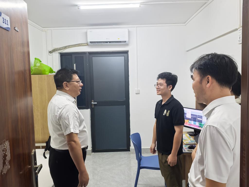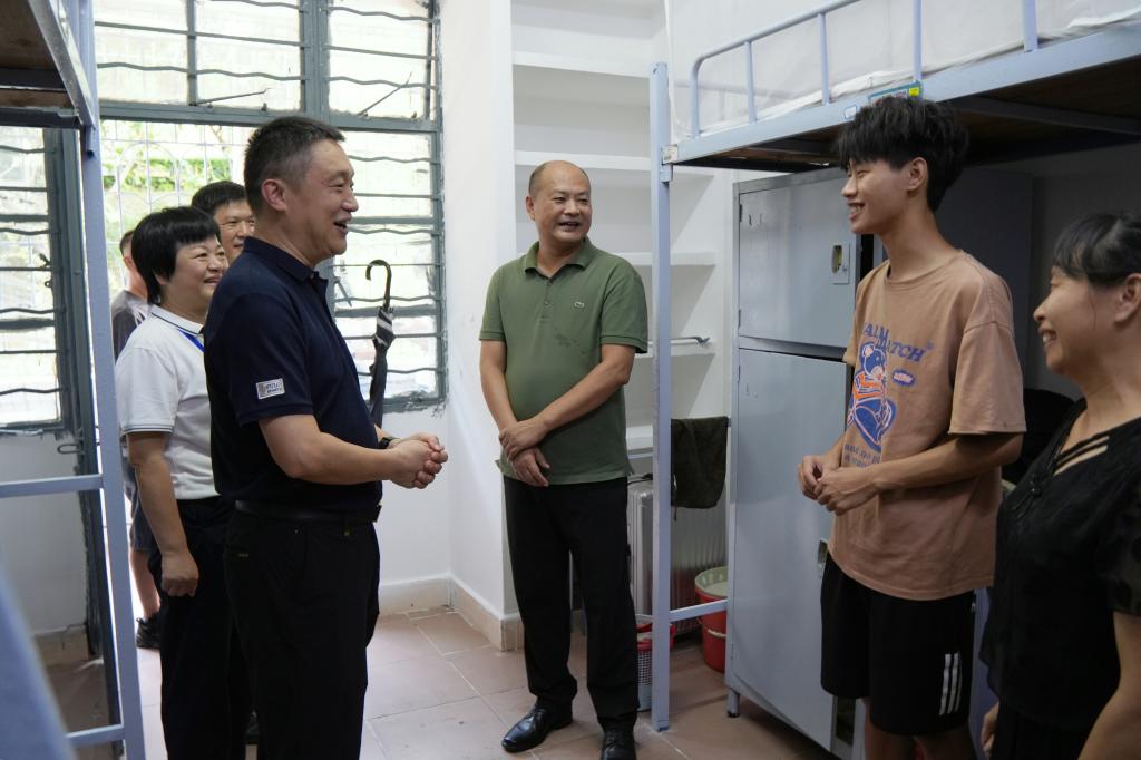 “从哪儿考来?”“宿舍看过了吗?”“饭菜口味如何?”学校党委书记杨洲、党委副书记谭平,学校党委常委、副校长谭北平、宁凌、邓逢光、周昌仕、鲁义善,党委常委、宣传统战部部长林宇等校领导前往各个学院的报到点及学生宿舍、食堂,与新生及家长亲切交流,叮嘱各学院和相关部门要耐心细致地做好服务工作,特别询问了各学院“绿色通道”等政策的落实情况,确保迎新工作细致周到。