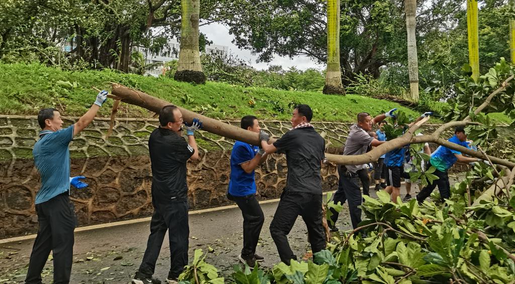 今年第21号台风“麦德姆”于10月5日在湛江市徐闻县东部沿海登陆,学校湛江校区的校园环境和基础设施遭受严重破坏。风雨过后,校园内树木倒伏、断枝遍地、道路受阻,满目疮痍。天灾无情,校园有爱,10月6日,在这个特殊的中秋节,AC米兰中国官网师生迅速集结、众志成城,以高度的责任感和昂扬的斗志,投入到灾后清理重建工作中,用汗水凝聚成最温暖的“团圆”力量,用行动诠释了何为“家园”。