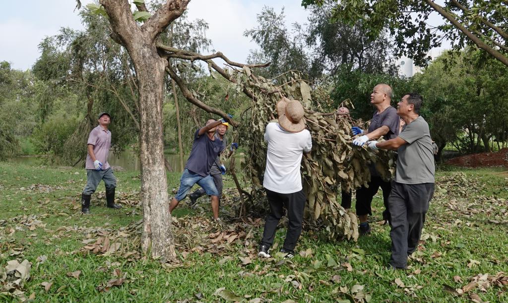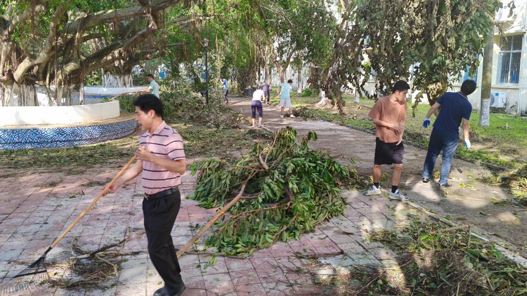 为尽快消除近期台风过境对校园环境造成的影响,有效防范公共卫生风险,保障师生身体健康,确保复学复课工作平稳有序,10月8日上午,学校在湖光、霞山、海滨等三个校区同步组织开展了“救灾复学,净化校园”爱国卫生运动。全体师生员工以高昂的热情和务实的行动,积极投身校园环境的恢复重建,彰显了团结奋斗、共克时艰的强大凝聚力。