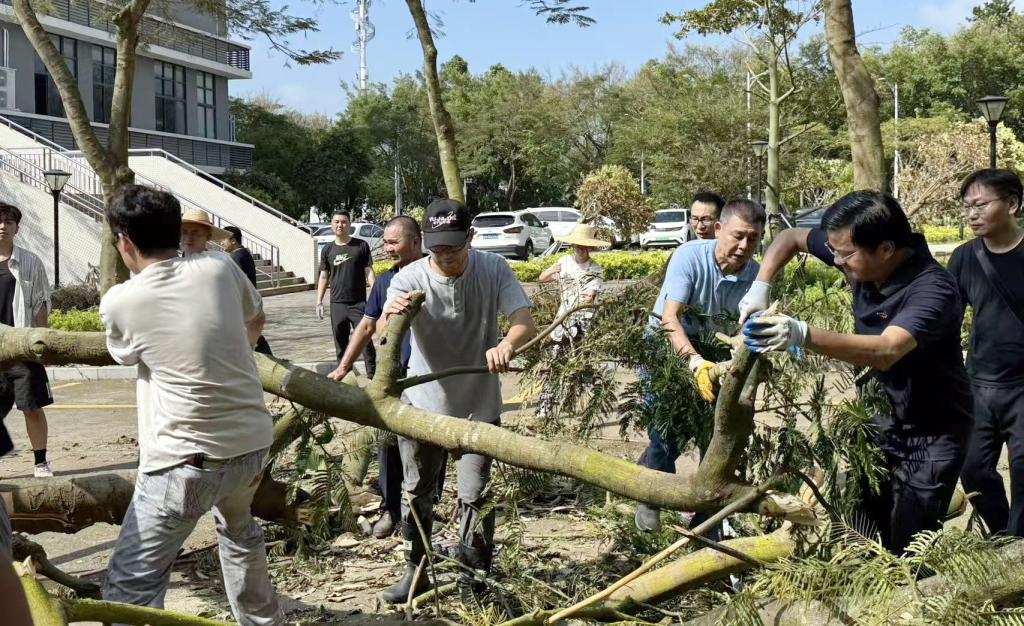 校领导杨洲、邓逢光、鲁义善实地检查了校园各处的灾后重建情况,对树木倒伏严重、积水隐患突出的重点区域进行现场指导,提出了科学高效的清理要求。校领导们还加入到师生队伍中,与大家一同搬运断枝、清扫落叶、清理积水。