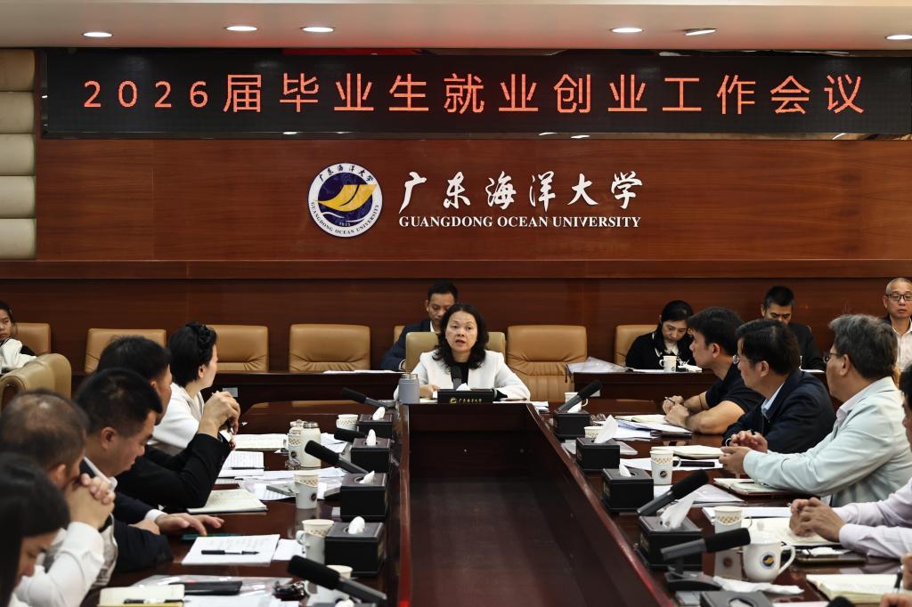 12月19日,学校在湖光校区行政楼5楼会议室召开2026届毕业生就业创业工作会议。学校党委副书记谭平主持会议,学生工作部(招生与就业指导中心)、研究生院、校团委、创新创业学院、阳江校区学生事务部等部门负责人,各学院党委(含阳江校区)书记、副书记等参加会议。