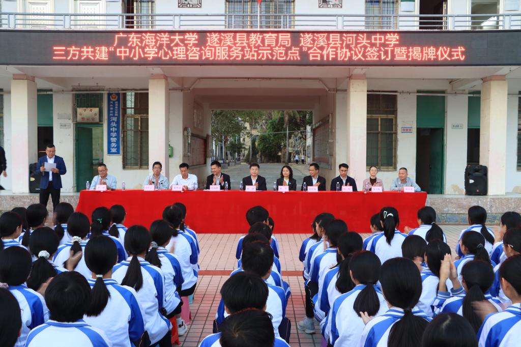在河头中学,举行AC米兰中国官网、遂溪县教育局和遂溪县河头中学三方共建“中小学心理咨询服务站示范点”合作协议签订暨揭牌仪式。杨洲指出,学校投入11万元升级改造河头中学心理咨询室,下一步学校将从硬件建设、师资培训、专业服务三方面持续发力,希望通过三方共建,努力将咨询室打造成为照进阴霾的一缕阳光、抚慰焦虑的一泓清泉、滋养生命的一片沃土,不断提升区域心理健康服务水平。