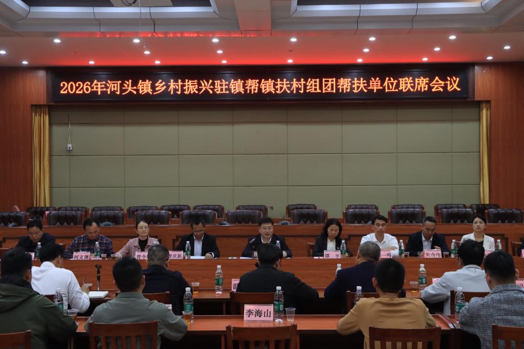 1月20日,2026年河头镇乡村振兴驻镇帮镇扶村组团帮扶单位联席会议在河头镇召开,学校党委书记杨洲、党委副书记谭平、组织部部长曾庆新、学生工作部部长郑一鸣、组织部正处级组织员兼副部长曾令梅,遂溪县委副书记温观寿、县委常委、副县长朱锐、县政协副主席李实秋、河头镇党委书记黄彬恩、各组团帮扶单位负责人和全体工作队员等同志参加会议。