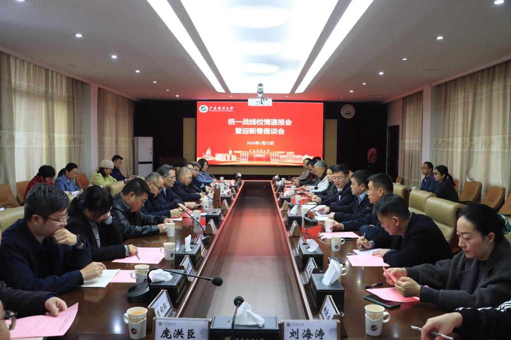 1月22日下午,学校在霞山校区成教楼第一会议室召开统一战线校情通报会暨迎新春座谈会。校党委书记杨洲,党委副书记谭平,党委常委、副校长鲁义善,党委常委、宣传统战部部长林宇出席会议。党政办公室主任尹喜,组织部部长曾庆新,学校省、市政协委员代表,各民主党派、统战团体负责人及骨干成员参加会议。会议由校党委副书记、校长刘文华主持。
