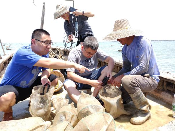 珍珠团队调研海区马氏珠母贝新品种“海选 1 号”生长情况