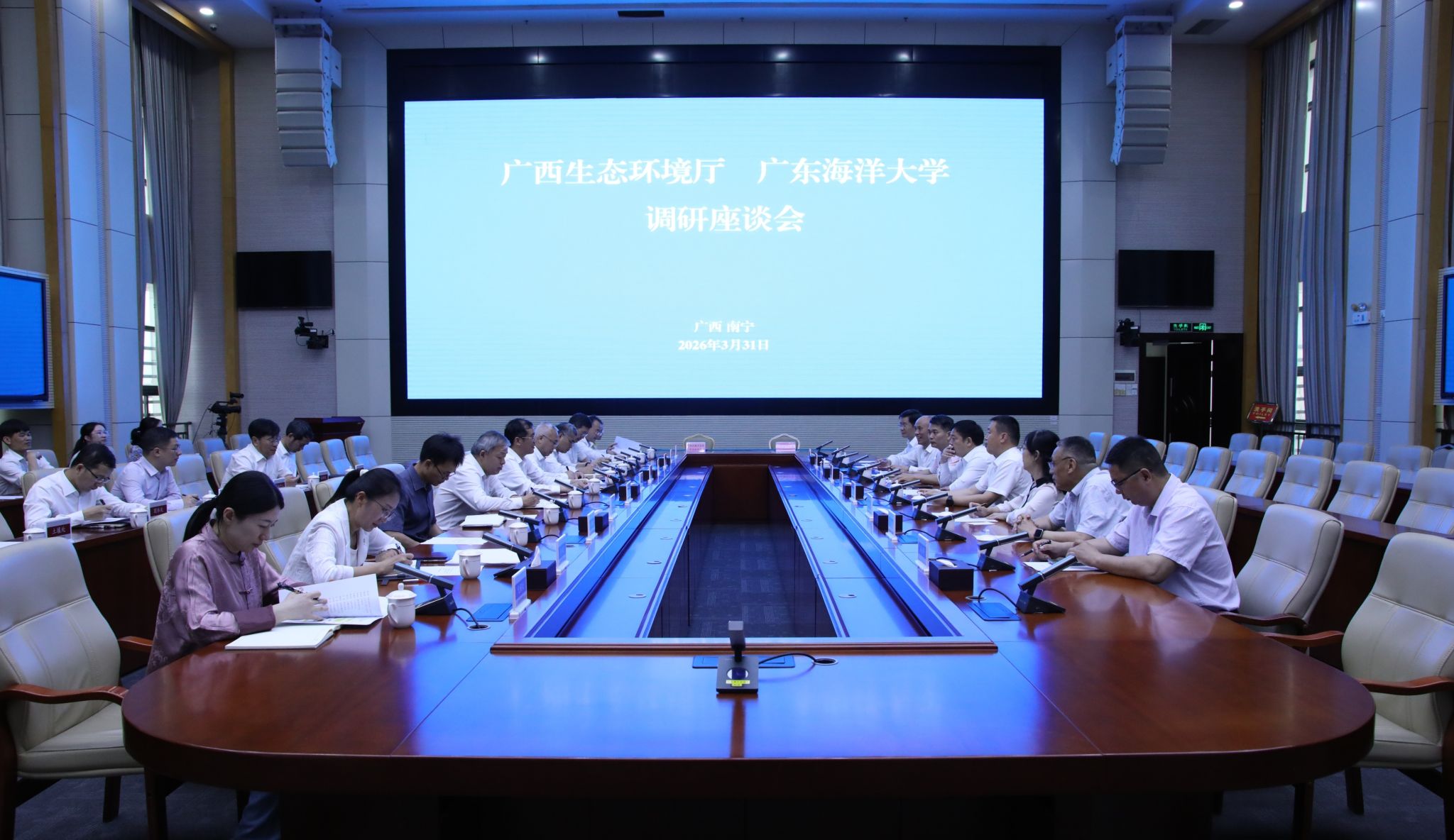 3月31日,学校党委副书记、校长刘文华率队前往南宁,与广西壮族自治区生态环境厅举行工作座谈,并签署战略合作框架协议。广西壮族自治区生态环境厅党组书记、厅长陈亮出席座谈会并见证签约。